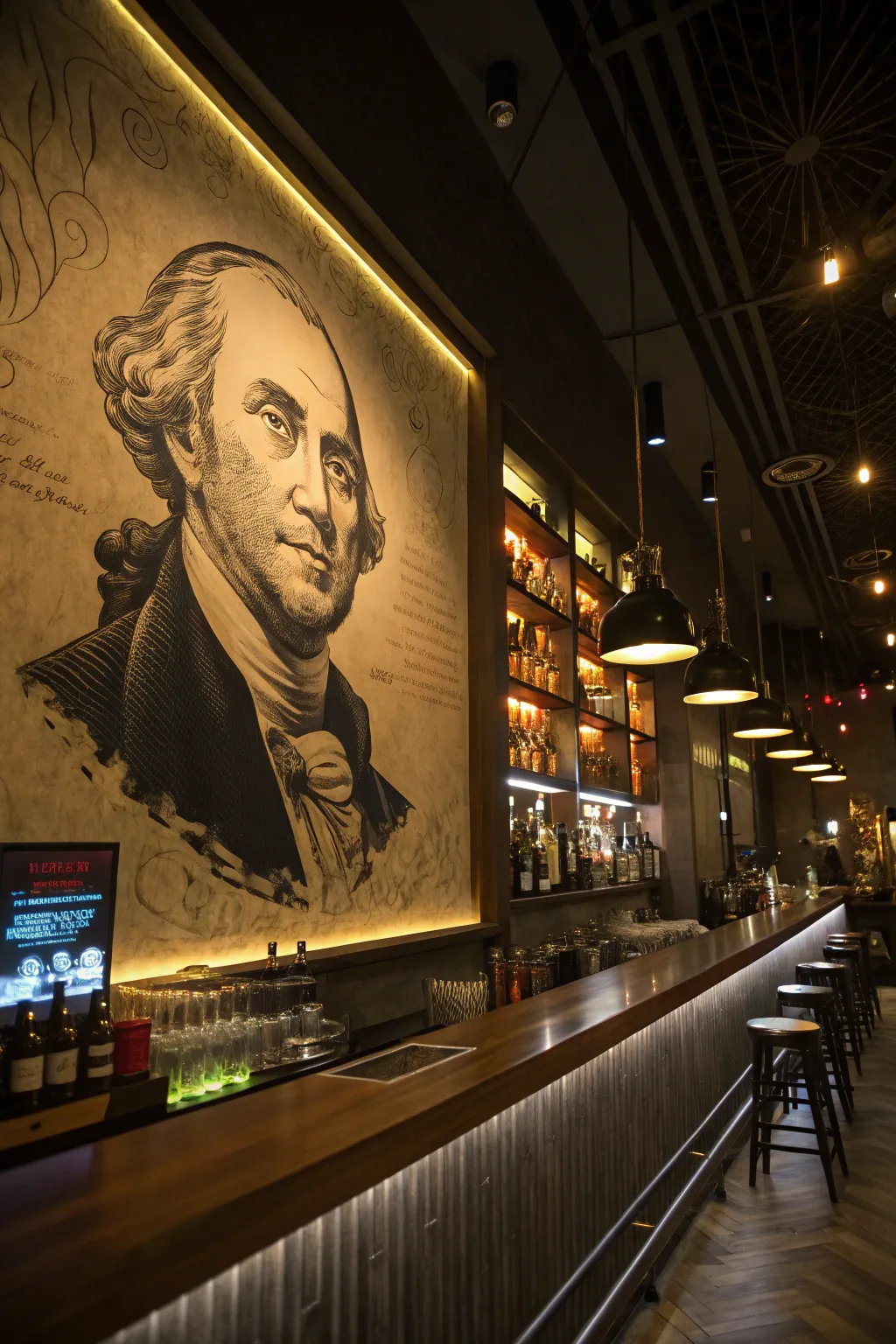 - Radiant Wall Art Piece: Elevate your bar’s mood with bright neon wall art, radiating contemporary elegance and appeal.