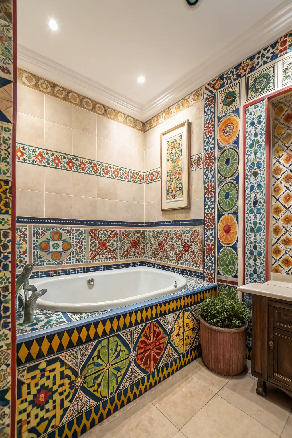 - Porcelain Mural Tiles: Transform your bath area using vibrant porcelain mural tiles to instantly enhance visual appeal.