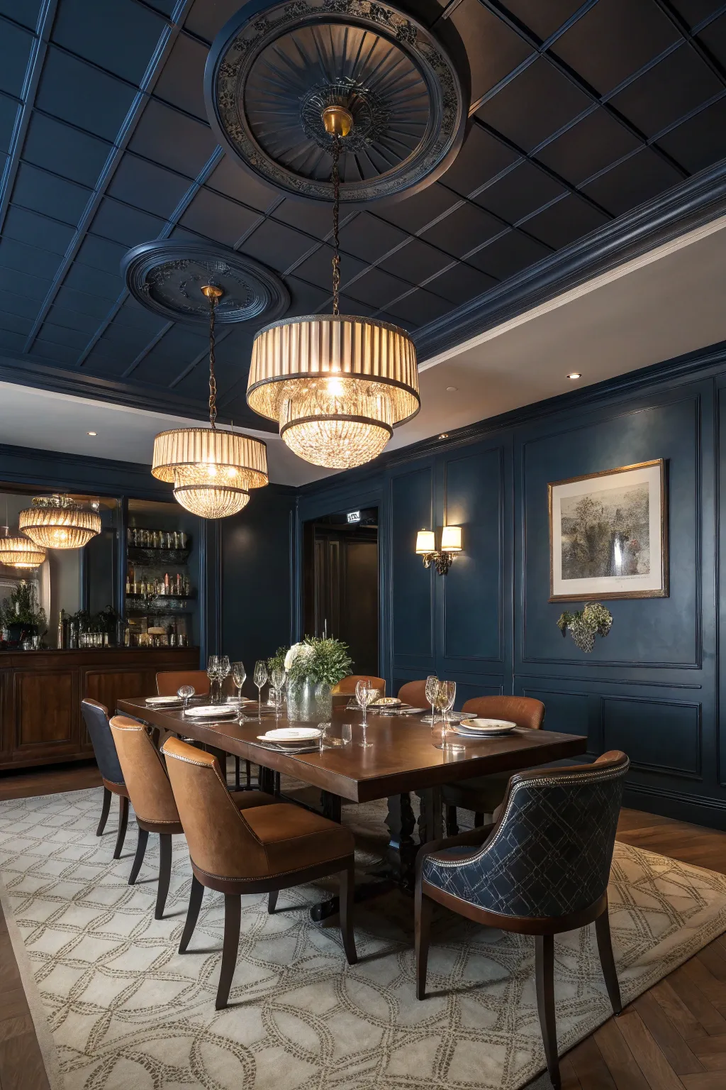 - Midnight Blue Ceiling Finish: Discover refinement by painting your ceiling a deep midnight blue, creating an enchanting environment.