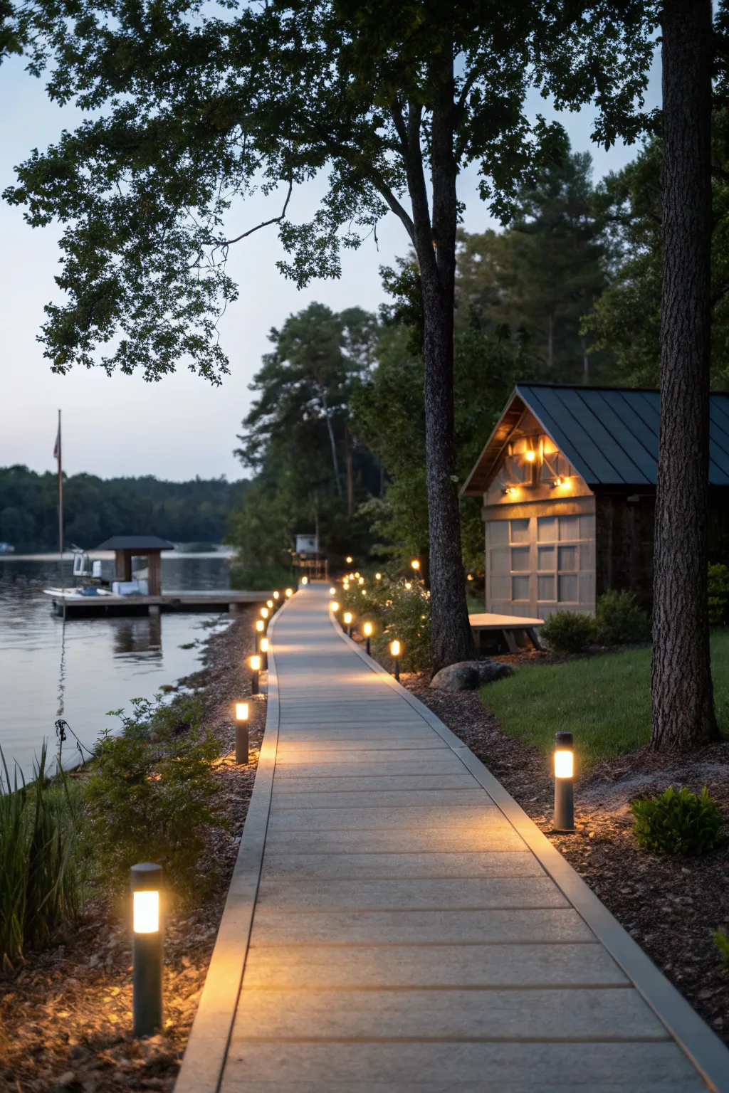 Brighten pathways and docks with path lamps to improve both safety and visual appeal. These lamps guide you safely toward the boat house, especially on those dark nights.