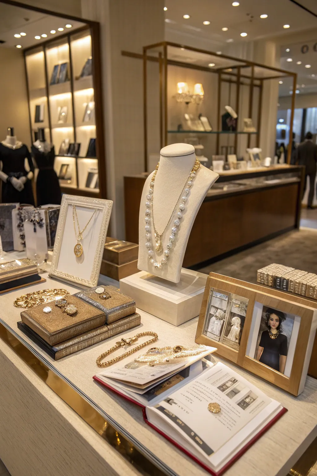 Use circular and tiered tables to arrange jewelry, maximizing room and creating visual appeal. I’ve often noticed these setups encourage customers to spend more time browsing.