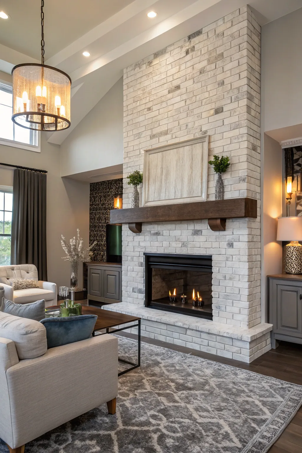 Creating a dual-tone brick fireplace is a stylish way to bring in dimension. Mix contrasting shades such as gray and white to create a sophisticated, layered effect.