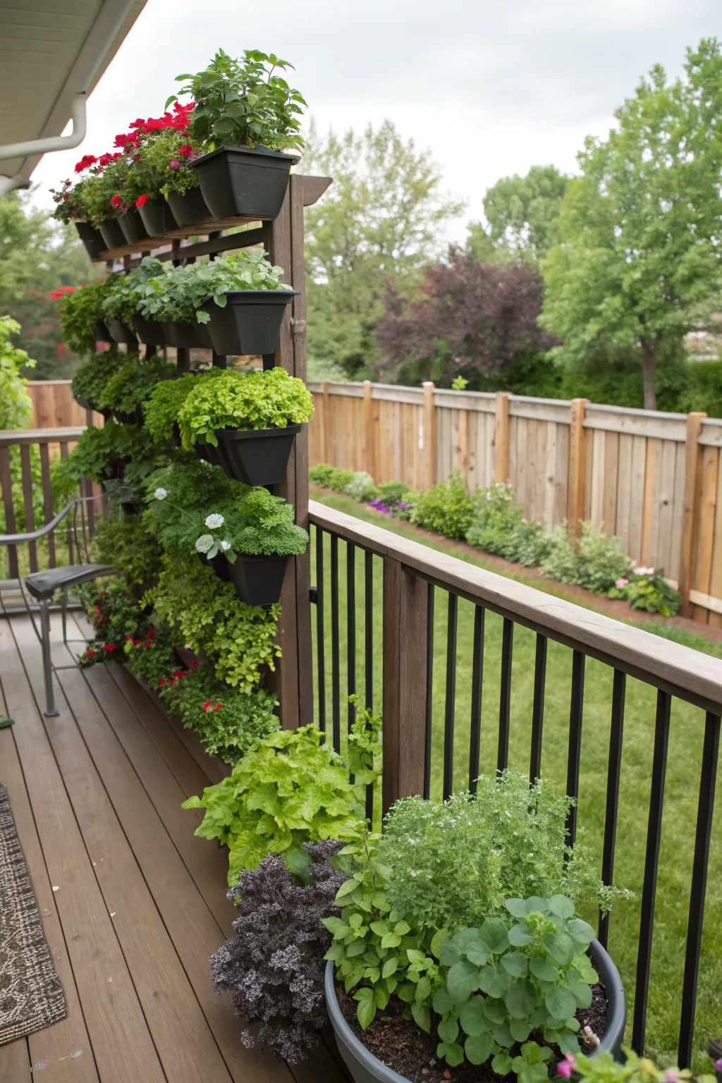 If you’re limited on space, climbing gardens are a clever solution. I attached some planters to the side of my deck, and they’re ideal for herbs and small flowers.