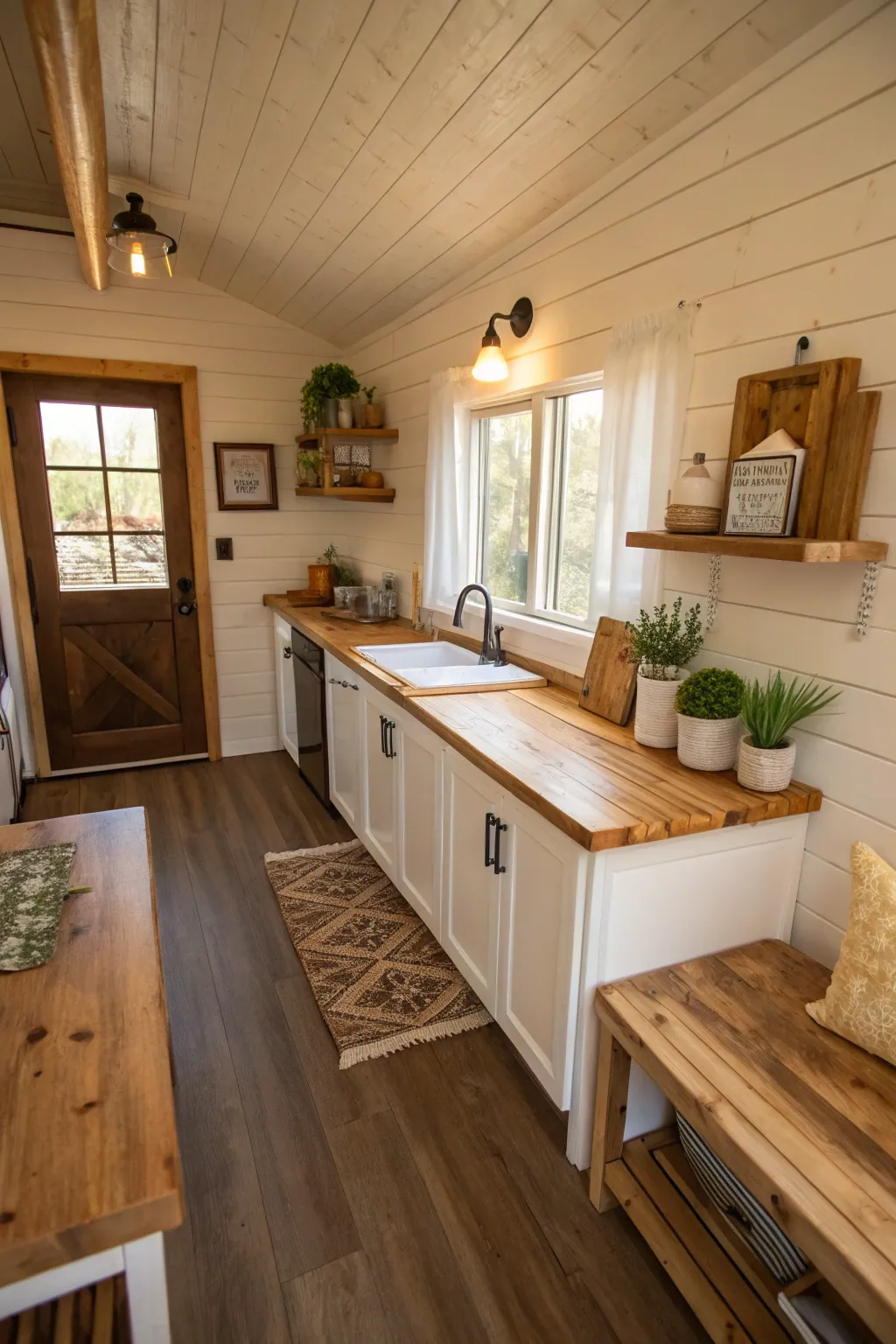 - Wooden Wall Fixtures: Revitalize your kitchen with refined wooden fixtures, ideal for showcasing dinnerware and plants with elegance.