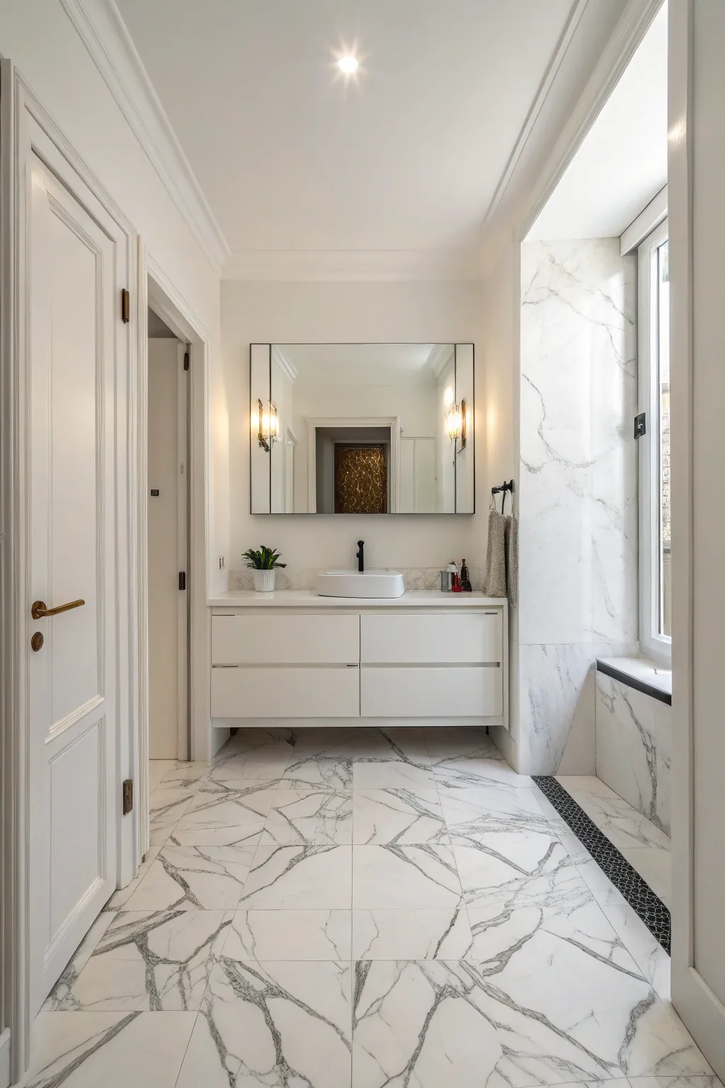 - Marble-Look Floor Tiles: Upgrade with elegant marble-look tiles for a chic and clean bathroom transformation.
