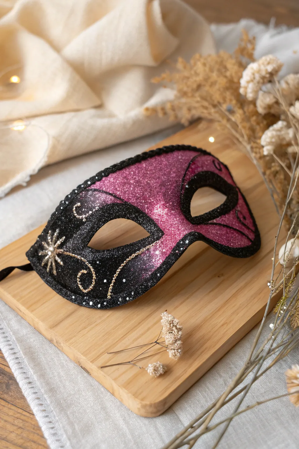 Make a mask with a stick handle for convenient carrying to capture the traditional masquerade vibe. I recall using an ornamental chopstick at one point, and it gave the classic style a playful spin.