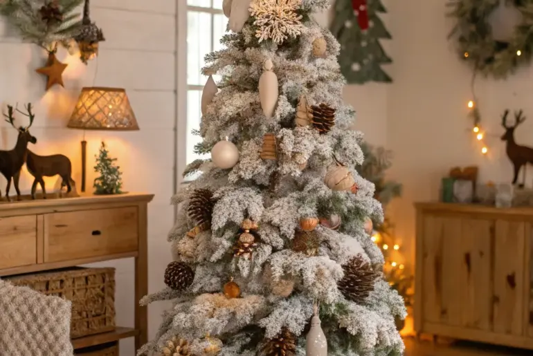 Flocked Christmas trees are a wonderful way to bring the serene beauty of a snowy winter scene into your house. Allow me to show you some delightful methods to adorn these gorgeous trees, helping you craft an enchanting holiday setting. Colorful Riot A colorful riot-themed flocked Christmas tree. Break the mold with a riot of colors and cheerful ornaments. This bold method brings energy and vibrancy to your holiday décor. Products that could assist: Vibrant…