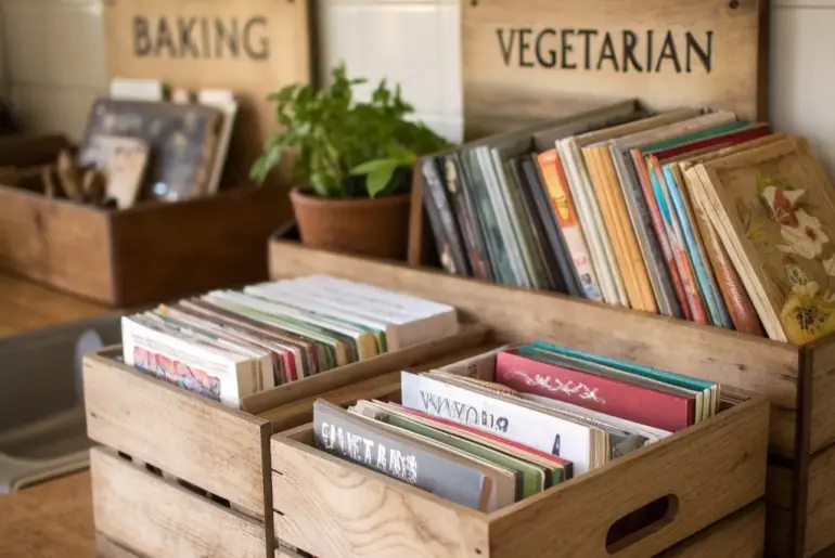 Like me, you probably see your cookbook collection as both a valued resource and a design challenge. Let’s uncover some inventive and elegant methods for arranging your beloved culinary books. Plate Display as Book Storage Plate racks offer an unexpected storage solution for cookbooks. A plate display can function as a distinctive and charming method for storing cookbooks. Ideal for adding character to your kitchen without compromising functionality. A few helpful options: Wood Plate Display…