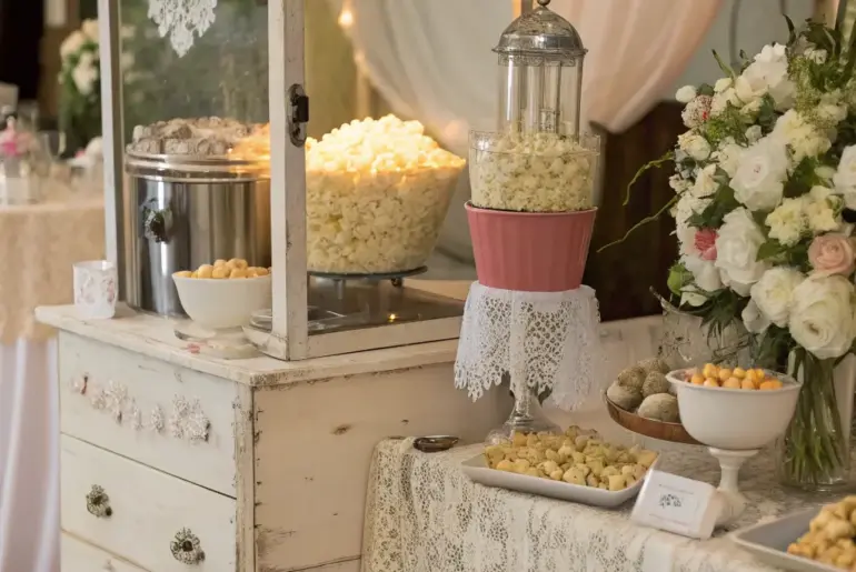 Popcorn stations are quickly becoming a cherished addition to wedding receptions, providing a playful and engaging treat for attendees. Let’s explore some sophisticated and distinctive concepts to elevate your popcorn bar to an entirely new level of refinement. Diverse Popcorn Selections An assortment of premium popcorn flavors beautifully arranged in clear glass containers. Present a spectrum of premium popcorn flavors to captivate and enchant your guests, spanning from traditional caramel to unique truffle parmesan. In…