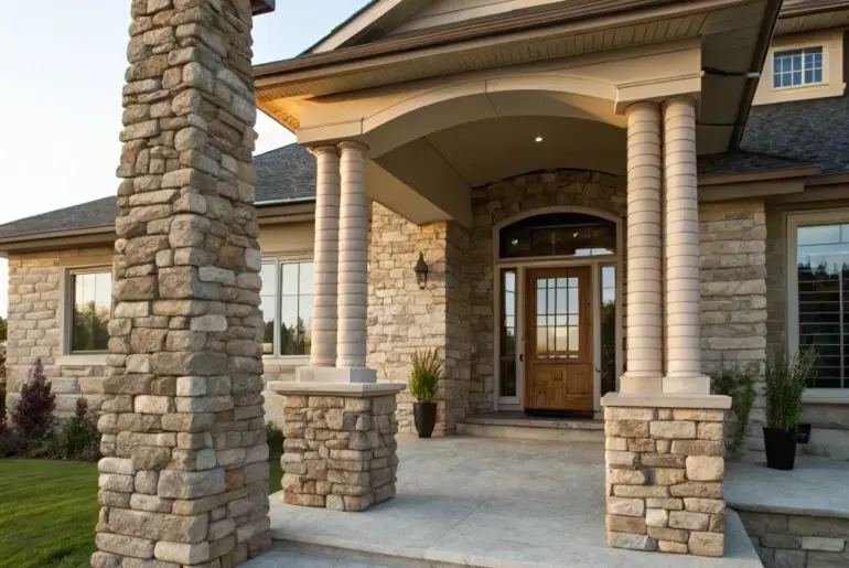 There’s an enduring appeal to using faux rock panels on a home. Whether aiming for a cozy, rustic vibe or a refined, modern aesthetic, these panels can introduce a sense of luxury and warmth to any residence. Vibrant Stone Contrasts Striking trims create a surprising contrast to this grey stone facade. Play around with daring trim colors against grey faux rock panels for a captivating visual dynamic. I once observed a home with deep red…