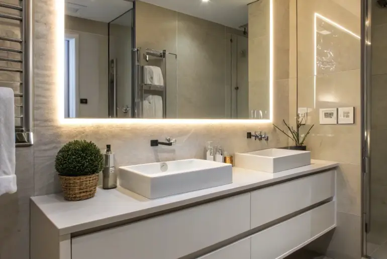 Designing a modern white bathroom is like starting with a clean slate, perfect for blending calm with contemporary style. Let’s explore some innovative ideas to turn your bathroom into a peaceful haven. Select Sleek Hardware Sleek fixtures add a touch of luxury. Modern faucets and hardware in metallic finishes like chrome bring a hint of luxury. I suggest these for their ability to complement the overall clean aesthetic. *** A few choices to try: Chrome…