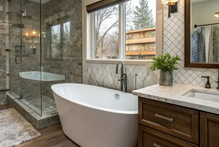 The combination of a standalone bathtub alongside a shower setup can completely transform your bathroom into a relaxing retreat. It doesn’t matter if you have a large master bathroom or a smaller one, you can incorporate these elements in numerous beautiful ways. Wet Room Splendor A sleek wet room featuring a standalone tub and integrated shower. A wet room design allows for a fluid, modern aesthetic without separate walls. This approach can make any bathroom…