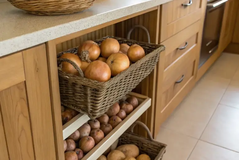 We all want a kitchen that’s both functional and beautiful, but where to keep potatoes and onions can be a challenge. Allow me to share some inventive and functional concepts for storing these must-have items so that they stay fresh while also adding style to your kitchen. Choose Air-flow Storage Sacks Air-flow netting sacks help maintain the freshness of your produce by allowing air to circulate. Air-flow netting sacks are well-suited for allowing air to…