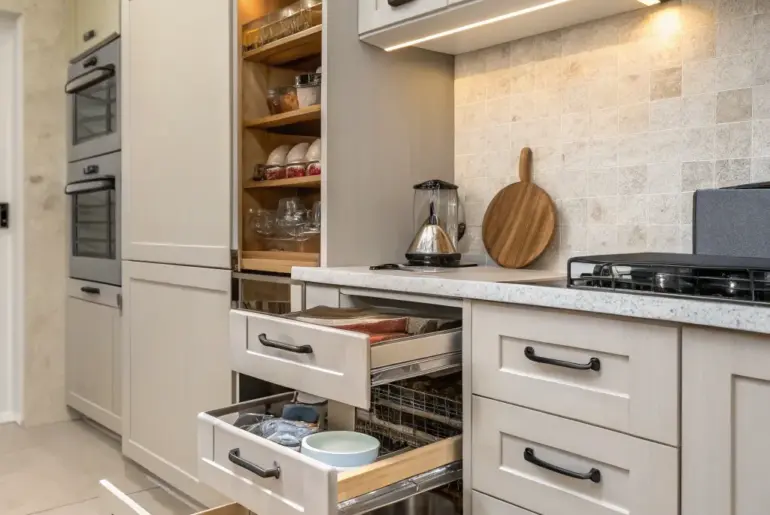 The ageless charm and adaptability of white kitchen cabinets have cemented their place in interior design. Let’s explore some inventive methods to integrate them into your kitchen, guaranteeing a harmonious blend of visual appeal and practicality. Integrated Equipment Integrated appliances offer a seamless look in white kitchens. For a uniform look, consider integrated appliances that harmonize with your white cabinetry. This method maintains a spotless, continuous visual stream. Useful items to consider: Integrated Cold Storage…
