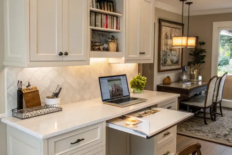 Ever ponder turning an unused area of your kitchen into a functional work zone? With a few carefully considered design choices, your kitchen can easily transform into a chic home office. Open Shelves for Display Open shelving offers both functional and decorative storage in a kitchen office. Put up open shelves to display books and decorations. This method has let me personalize my workspace while keeping it organized. Check if these fit your needs: Wooden…