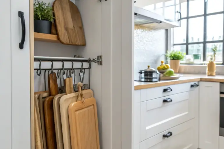 Chopping blocks are a must-have in any kitchen, but they often end up making our counters and cabinets look cluttered. Discovering the right storage solution can elevate your cooking area into a space that’s both useful and visually pleasing. Coat Hooks for Boards Coat hooks used for hanging chopping block storage. Attach coat hooks to the side of a cabinet for a special hanging storage option. I love this way for its simple and easy…