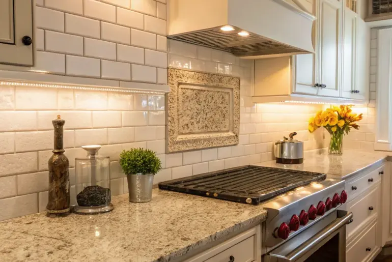 A marble backsplash in the kitchen has an irresistible charm. Its sophisticated and enduring allure can transform any ordinary space into a breathtaking showpiece. Metallic Accents A chic kitchen with marble backsplash and metallic accents. Pair your marble backsplash with metallic accents for a chic, modern look. I’ve discovered this combination to be particularly striking, introducing a hint of glamour. A few choices to try: Gleaming Cabinet Pulls: Upgrade your kitchen with sleek gold handles…