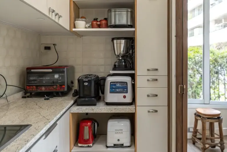 In the contemporary kitchen, maintaining a clean and open space is crucial for both practicality and visual appeal. This is where appliance garages excel, providing creative solutions to keep your cooking tools neatly stowed yet always within reach. Breakfast Nook Conversion A breakfast nook in a cabinet combines convenience with a cozy morning setup. Convert a simple cabinet into a breakfast nook with all necessary appliances and storage. This idea is a cheerful morning routine…
