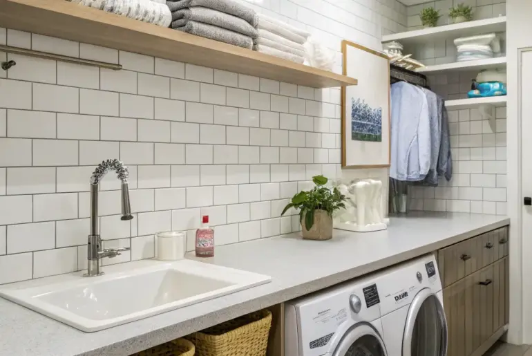 Though often overlooked, a thoughtful backsplash design can transform a simple laundry room into a stylish, serene space. Let’s uncover some imaginative ways to enhance your laundry area. Modern Updates Modern updates enhance the overall aesthetic appeal. Combine your backsplash with modern updates for a chic and stylish appearance. I’ve noticed that contemporary water taps and hardware can instantly refresh any space. Maybe worth checking out: Elegant Pull-Down Tap: Upgrade your sink area with an…