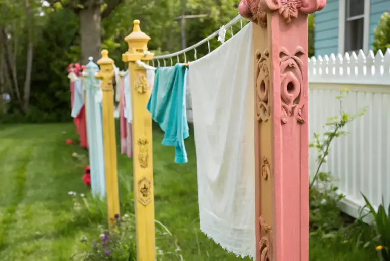 Beyond their practical use, clotheslines evoke a nostalgic sense of simpler times. Let’s uncover some inventive methods to incorporate this classic element into your home environment. Deck Clothesline for Compact Spaces An intelligent and understated clothesline solution for deck areas. If you possess a raised deck, take advantage of the space beneath for a subtle clothesline arrangement. It’s a savvy technique to dry garments without compromising your outdoor panorama. May just do the trick: Slide-Out…