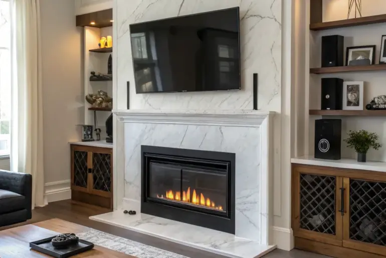 In the realm of interior design, merging a fireplace with a TV mounted above it results in a striking centerpiece, harmonizing warmth and entertainment. This guide explores captivating concepts to manifest this contemporary arrangement in your abode. Opposing Color Scheme Opposing colors emphasize the fireplace and TV as key features of the room. Play with an opposing color scheme to make your fireplace and TV standout. Applying dark shades against lighter tones can forge a…