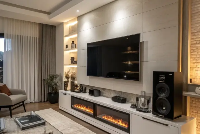 Designing an ideal fireplace entertainment hub is akin to creating the very soul of your abode. It’s a synthesis of warmth and amusement, delivering both ease and practicality in a single, inviting setup. Reflective Surfaces for Light Play Light illusion: The magic of glass and mirrors. Use glass or mirrors around your entertainment center to play with light and enhance the room’s brightness. This technique, which I often employ, can make a space feel larger…