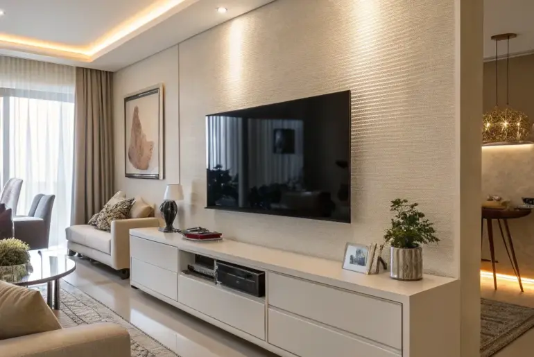Integrating a TV into a living room design that feels both intentional and stylish can be a fun design puzzle. I’m excited to share 18 innovative concepts to help your TV blend seamlessly into your living space. Include Balanced Setups Balanced setups create harmony in the TV area. Balanced setups around your TV can create a balanced, pleasing look. I frequently use this to improve the harmony of a room. Explore these options: Coordinated Light…
