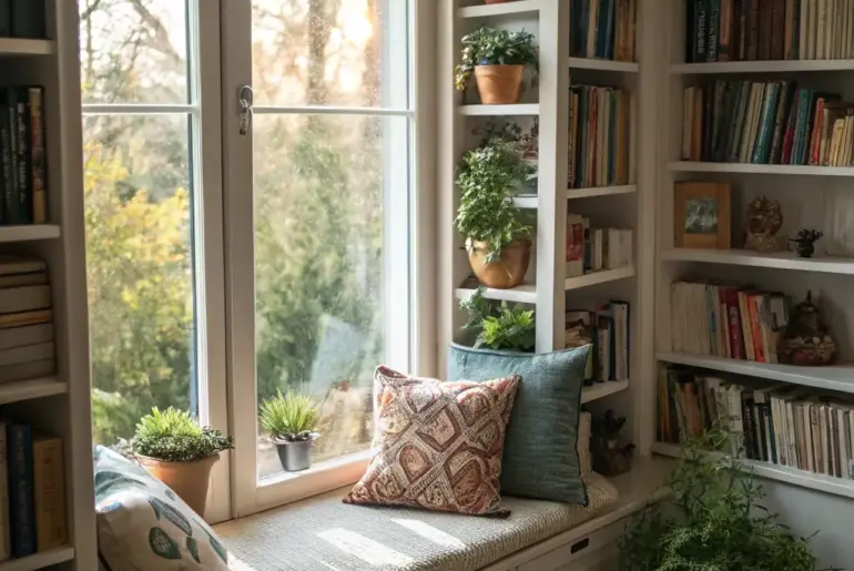 There’s a certain enchantment to a window framed by bookshelves, practically begging you to settle down with a captivating book and a warm beverage. Let’s uncover some inventive methods to turn those windows into cozy reading nooks. Artistic Presentation Infuse your bookshelves with artistic flair through creative arrangements. Transform your bookshelves into an art showcase with imaginative arrangements. I love experimenting with various layouts to maintain freshness and visual interest. Possibly handy products: Ornamental Book…