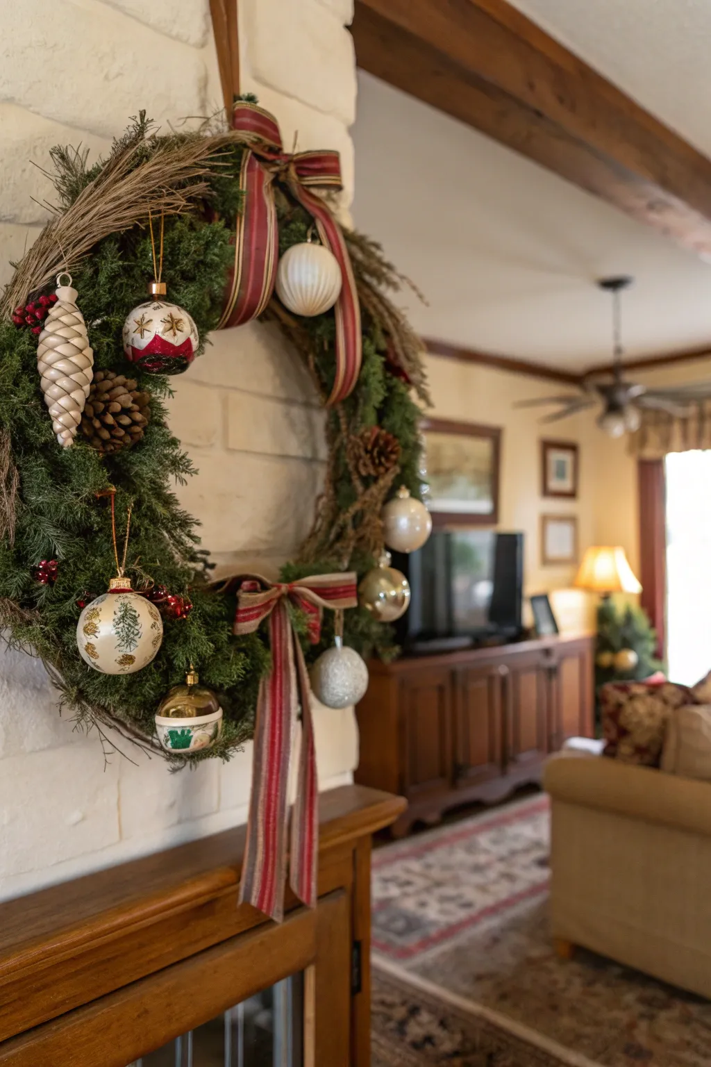 Add small vintage ornaments to your wreath for a classic look. These pieces tell a story and bring a personal element to the decorations.