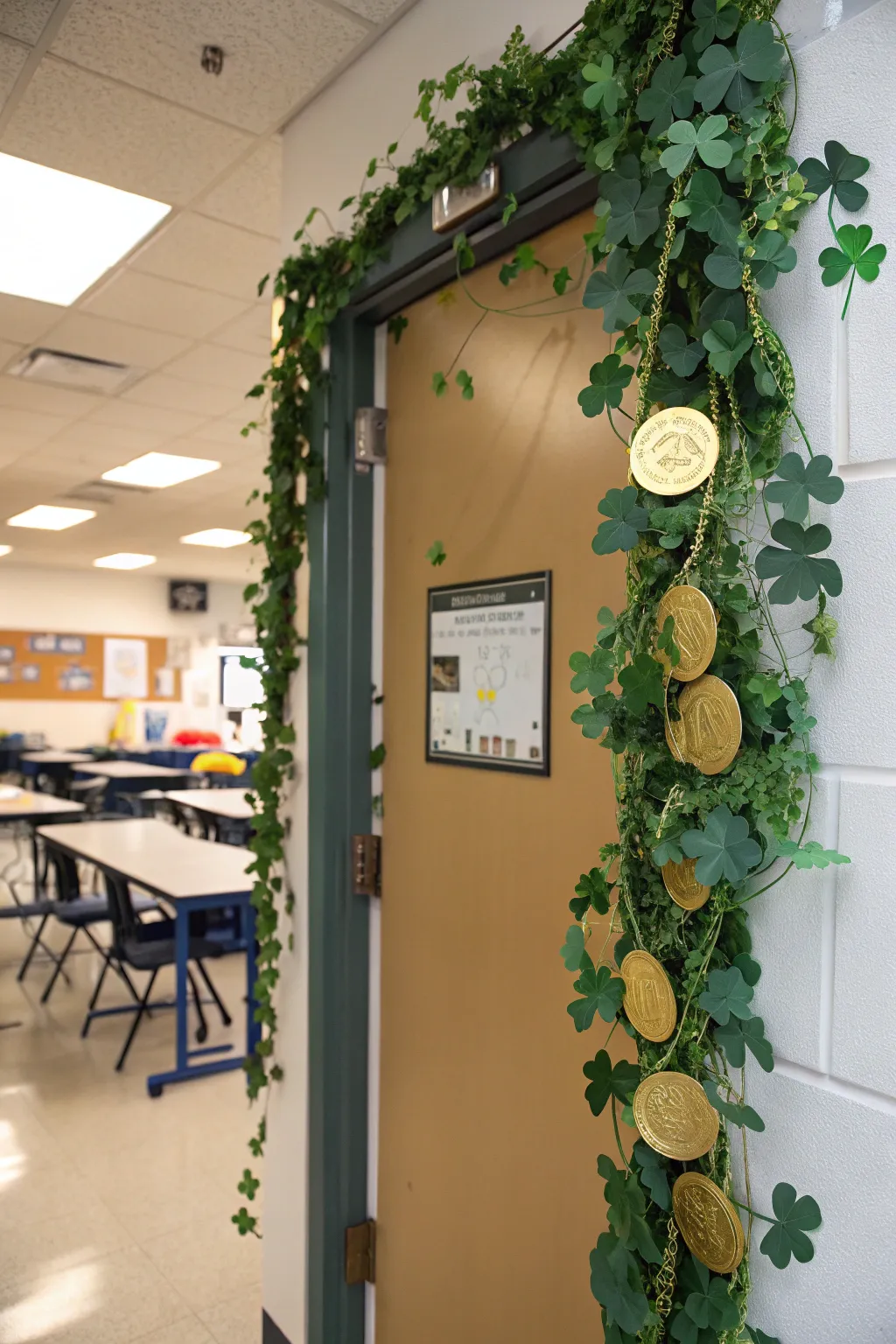Make a drape of shamrocks to frame your door. This idea brings texture and dimension, making your entrance feel extra special.