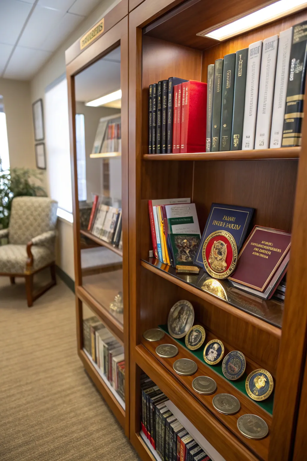Add your coins to your bookshelf decor for a unified look. I love how this method blends collections with literature, creating an intellectual and artistic vibe.