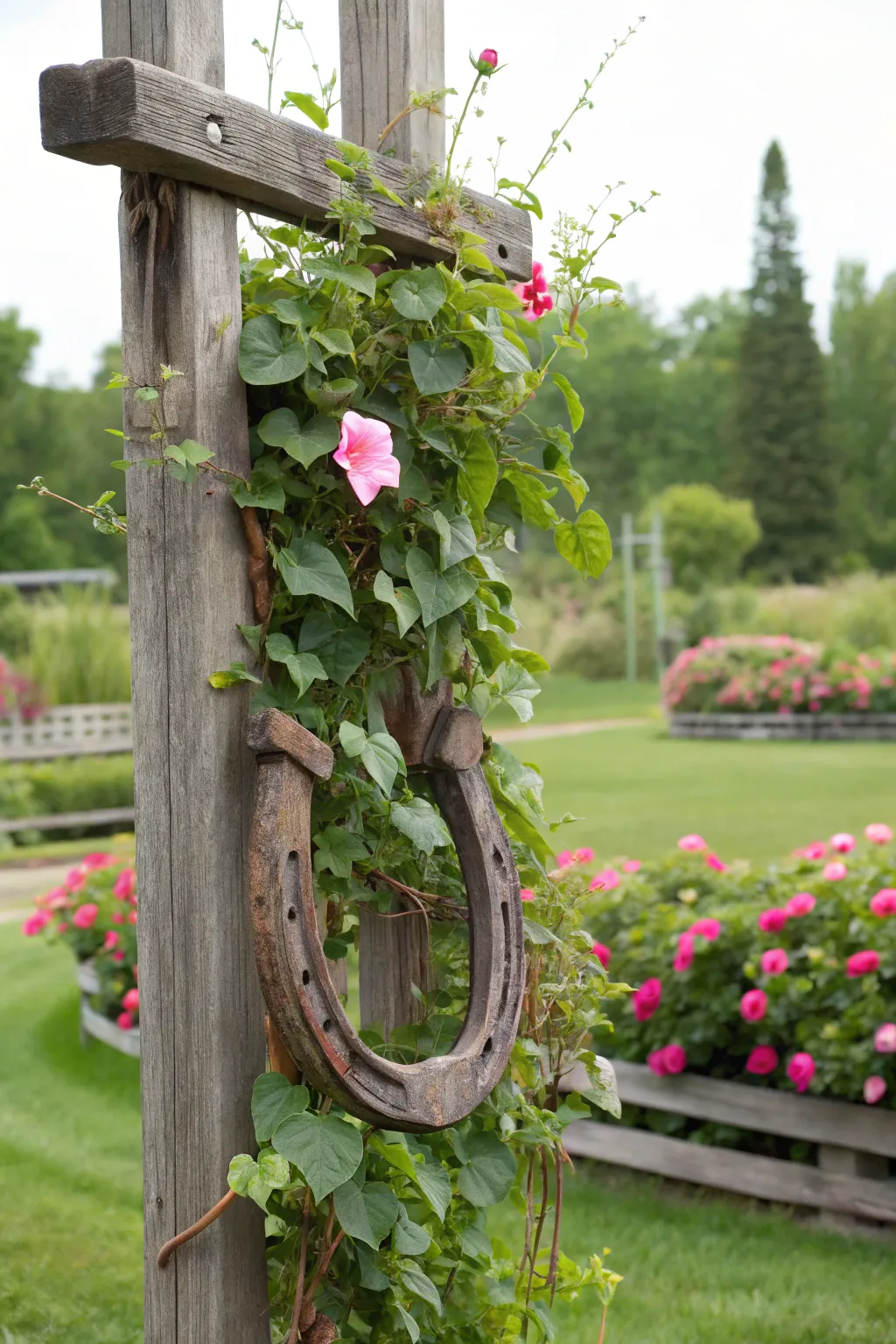 Repurpose a carriage harness as a garden frame for climbing flora. I have one in my garden, and it’s ideally suited for encouraging the growth of my vibrant climbers.