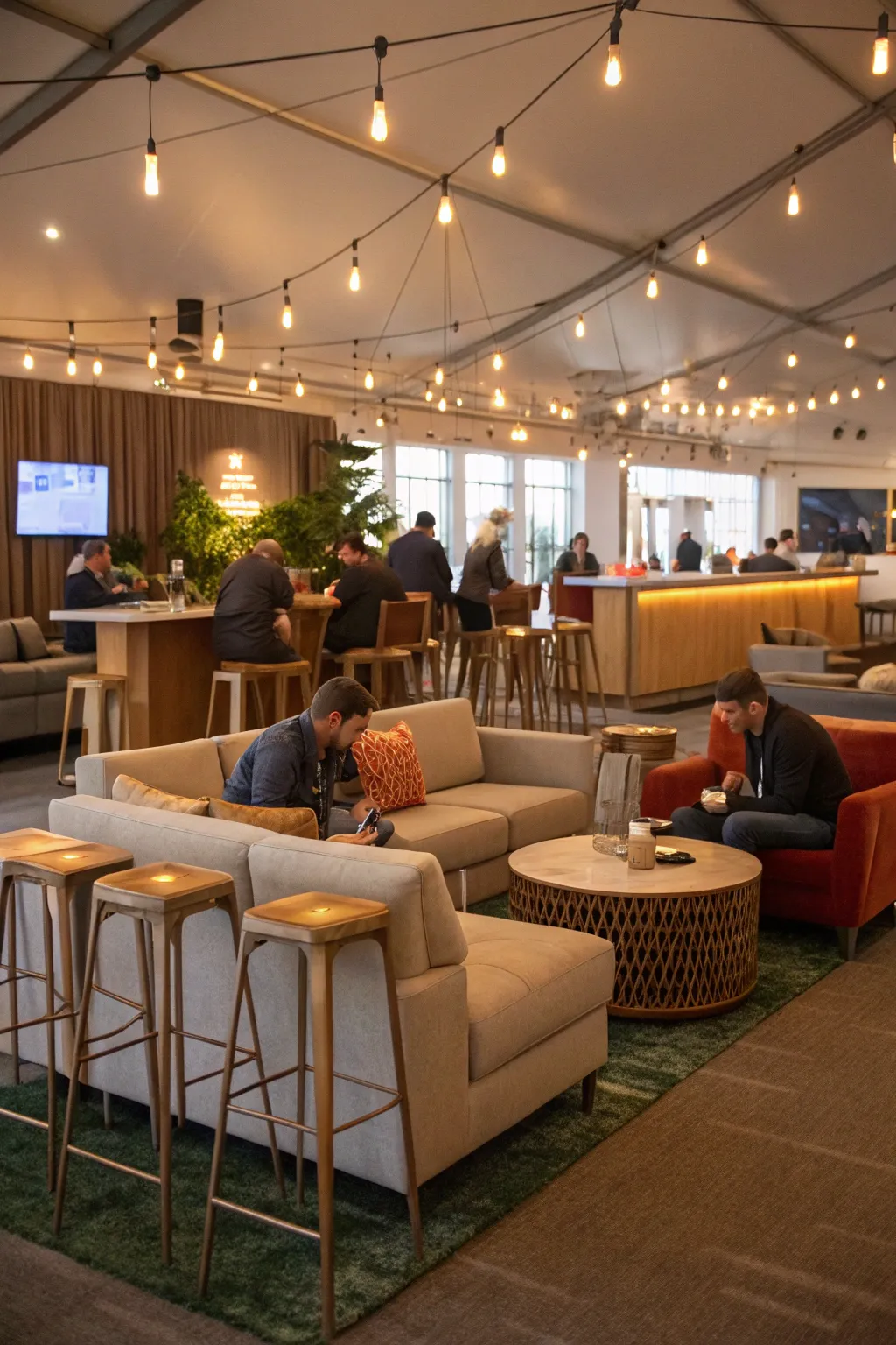 Interactive lounges promote connections and networking.