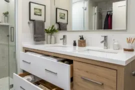 • Copper Sink: Enhance your space using a stylish copper sink, introducing warmth and elegance to your bathroom.