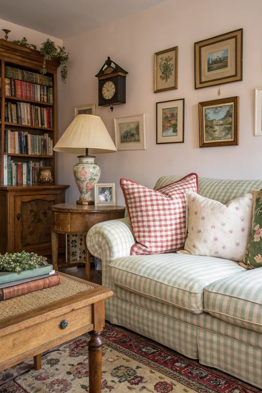Checked patterns on pillows or throws can add a charming, vintage vibe. They remind me of classic country homes and bring a cheerful touch to any space.