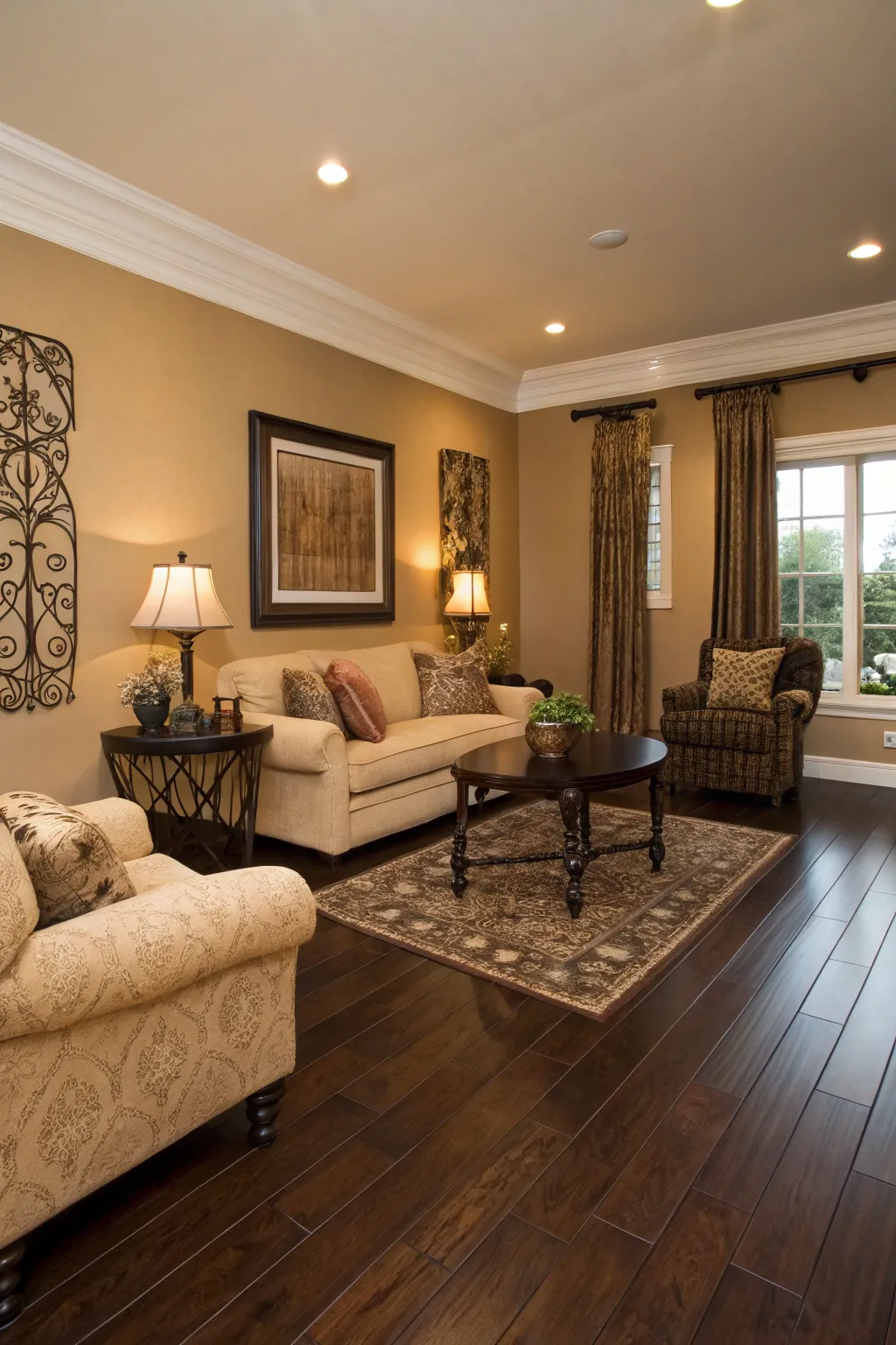 A warm beige on the walls can bring a comforting vibe that pairs wonderfully with dark floors. This color choice helps craft a friendly atmosphere, especially in your living spaces.