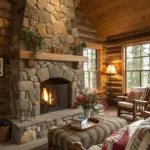 Combine country wood with brick features for a welcoming, cozy space. This pairing creates a snug ambiance reminiscent of a mountain cabin.