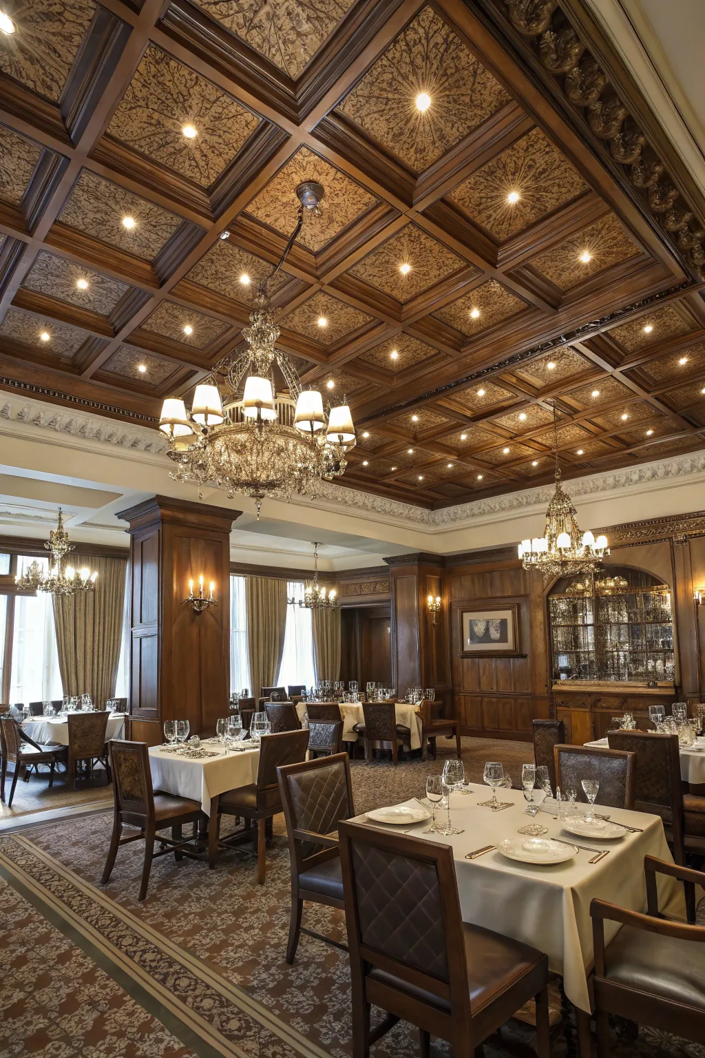 Add a hint of grandeur with coffered ceilings. I had these installed in my dining area, and they instantly enhanced the space with a timeless yet sophisticated charm.