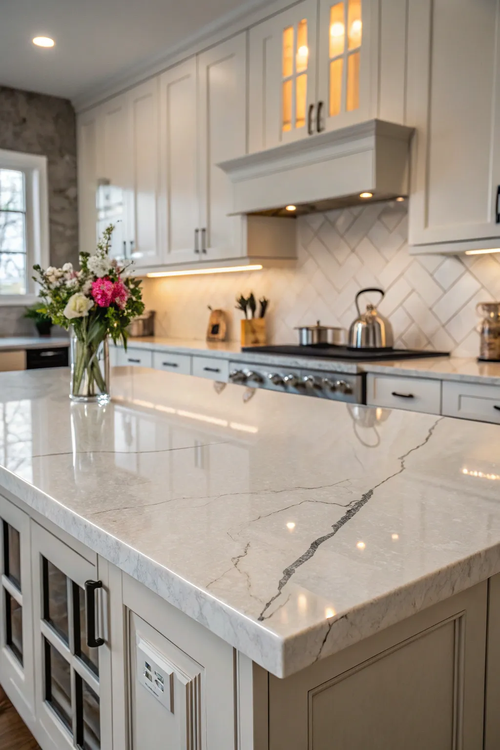 - Ornamental Glass Panes: Incorporate ornamental glass panes for a unique, personalized touch to your countertop end caps.