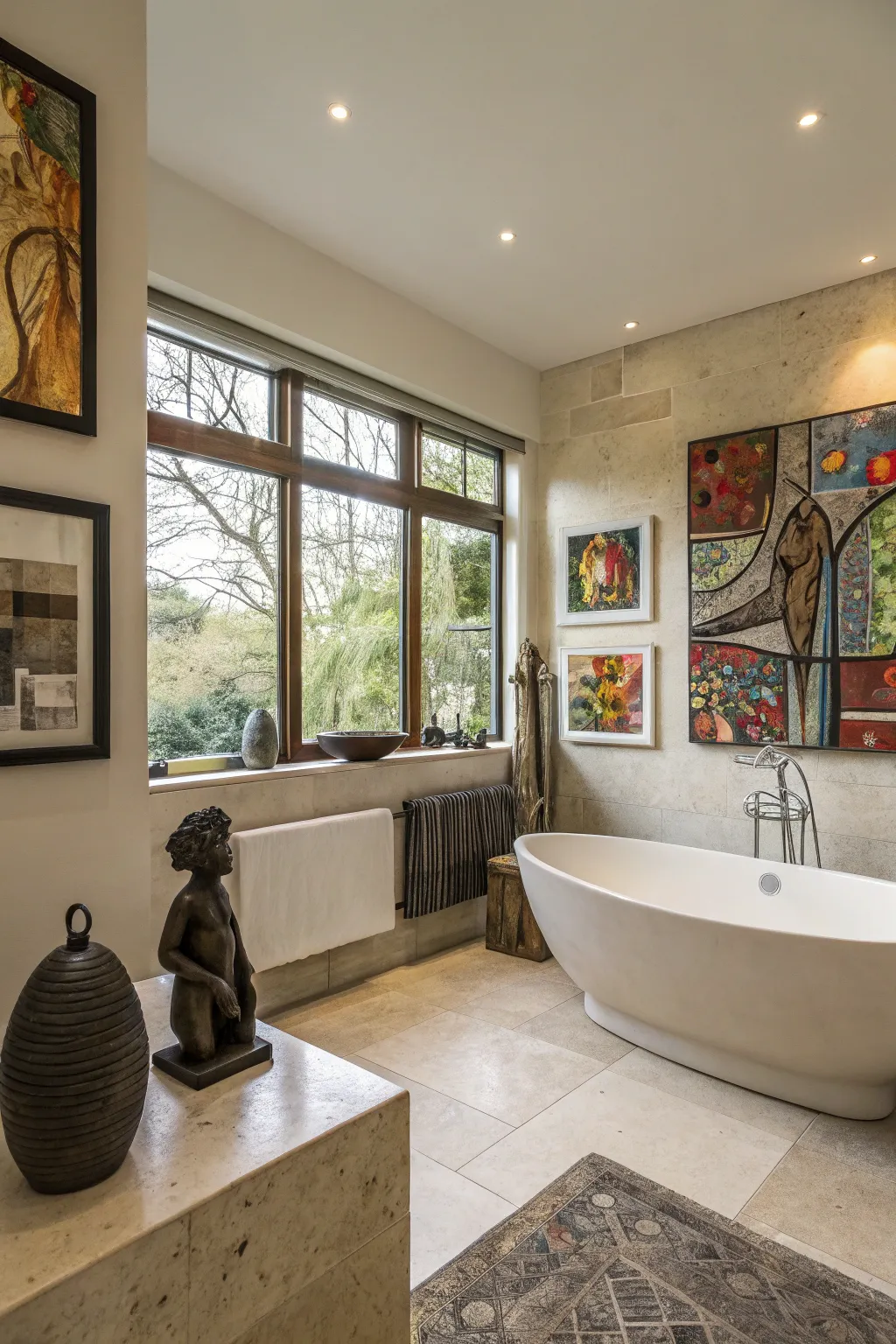 - Abstract Art Set: Enhance your ensuite using colorful abstract prints to create a lively, artistic vibe.