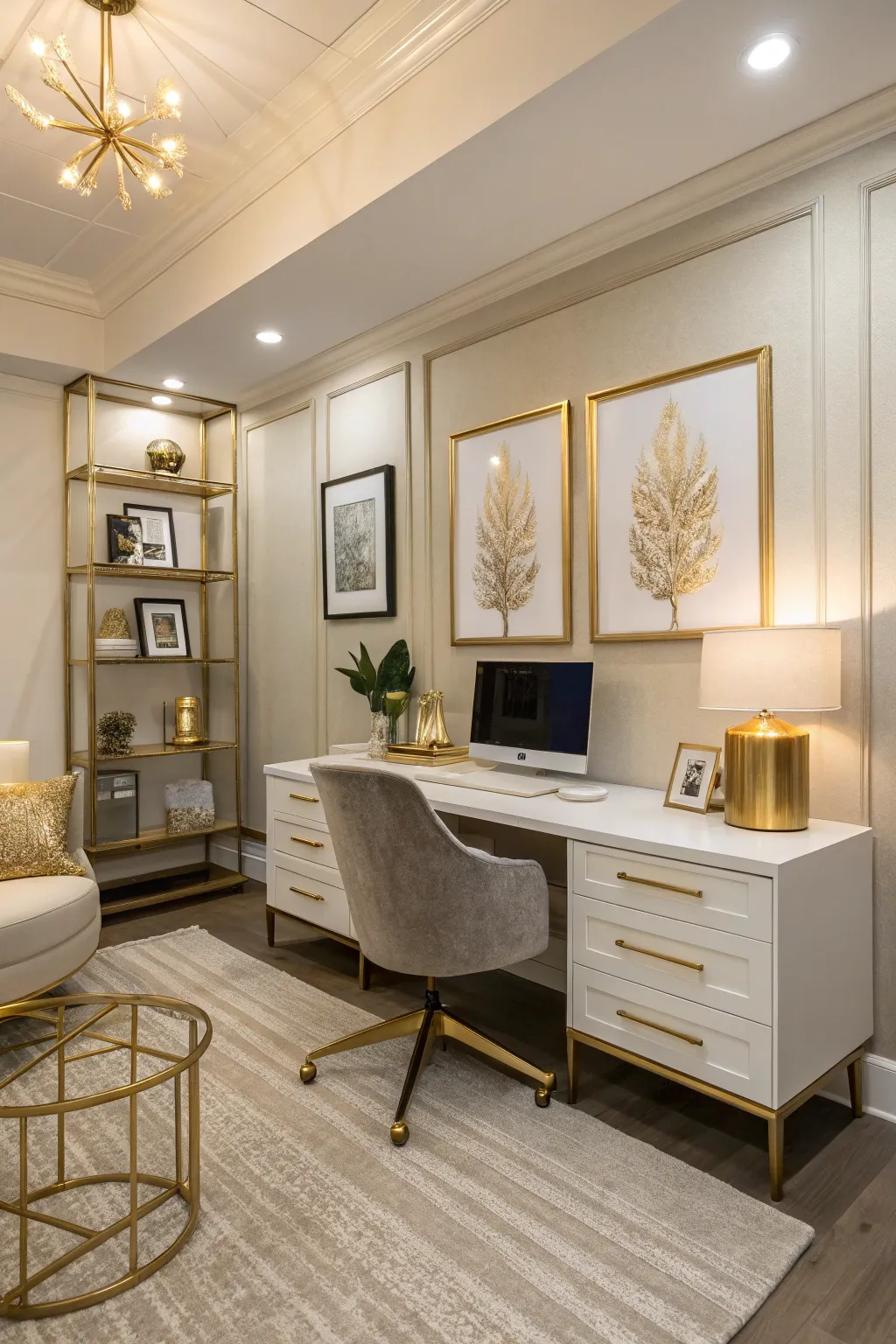 - Gilded Task Light: Brighten your office beautifully while elevating the decor with a sophisticated gilded task light.