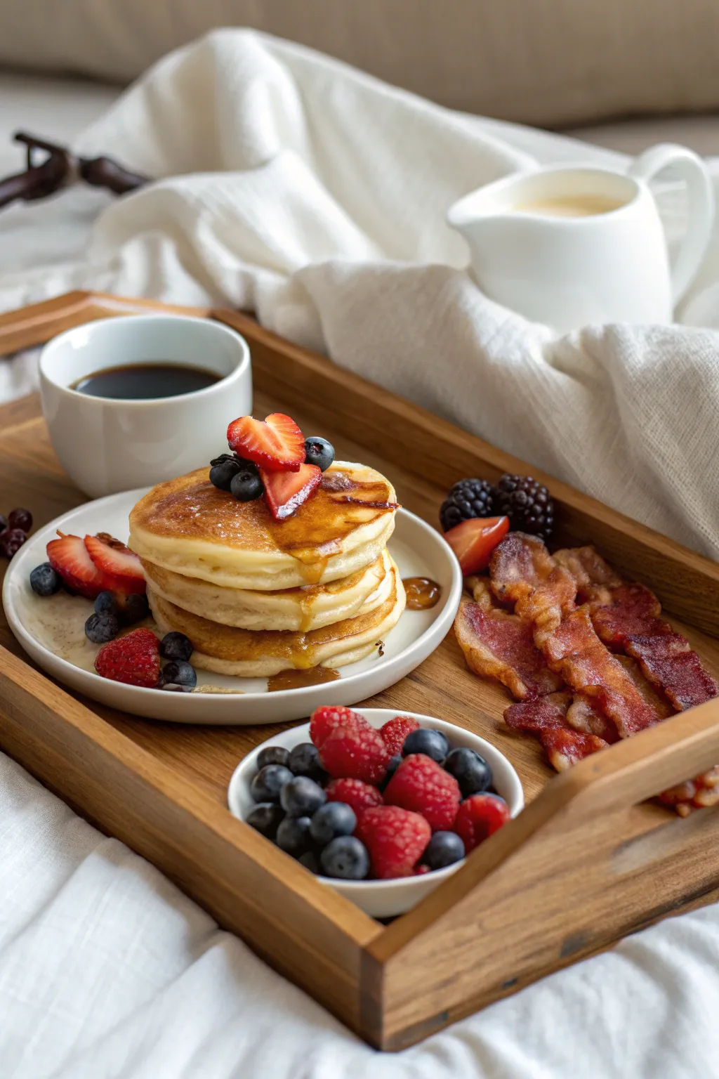 Kick off the day with a breakfast of fluffy pancakes and crispy bacon. I always think fresh berries and a hint of maple syrup make it even more delightful.