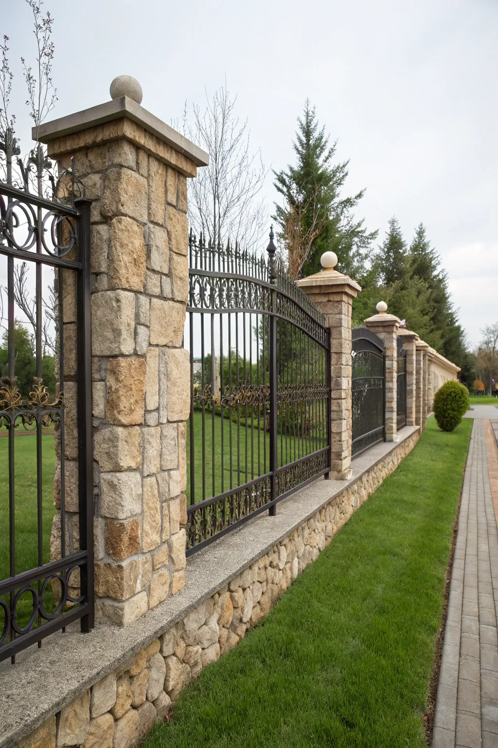 Construct a fence that balances seclusion alongside openness by employing rock bases and metal tops. I perceive this as ideal for preserving a sense of openness while guaranteeing seclusion.