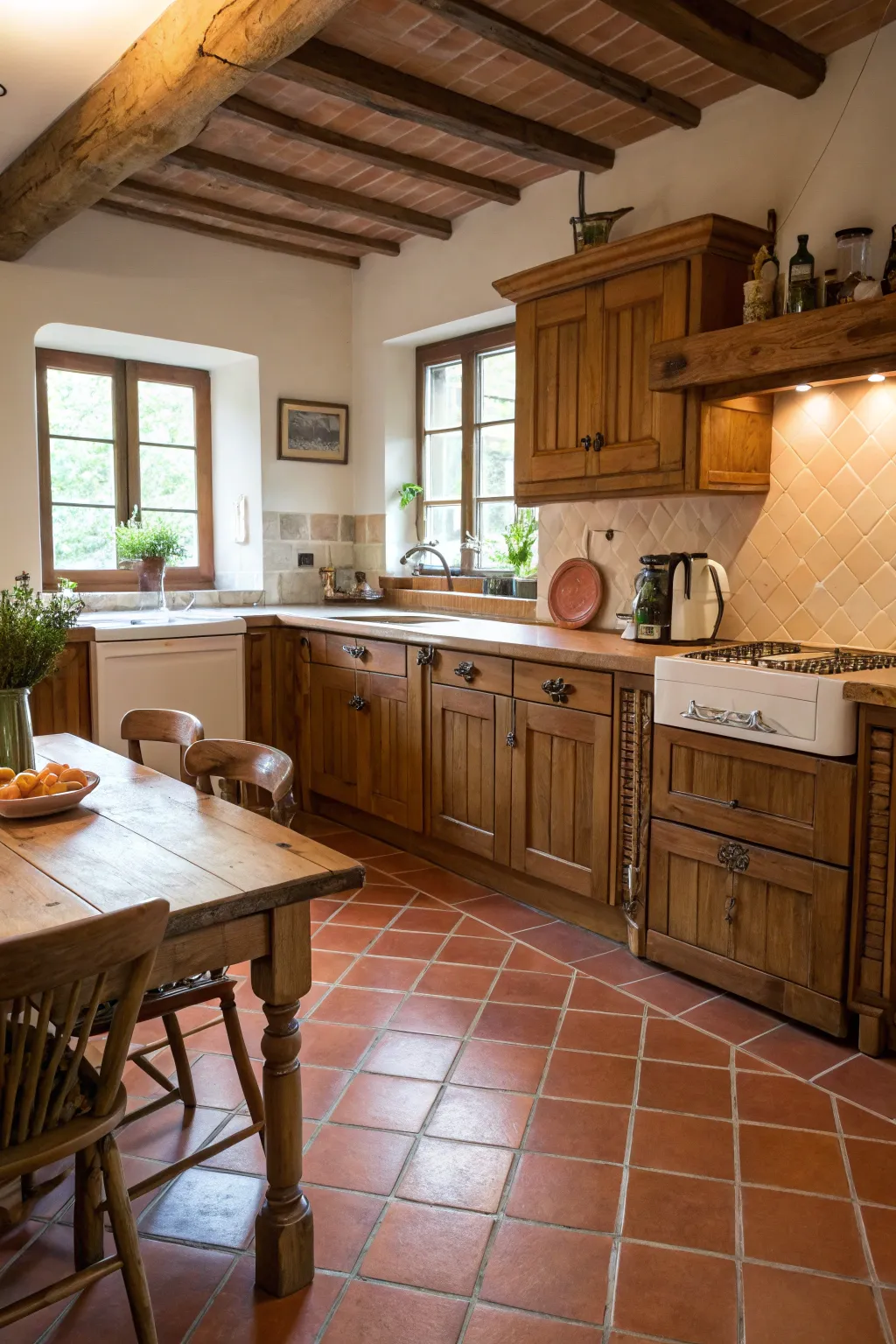 - Unglazed Clay Floor Squares: Enjoy rustic charm with clay floor squares, ideal for creating a warm, Mediterranean kitchen ambiance.