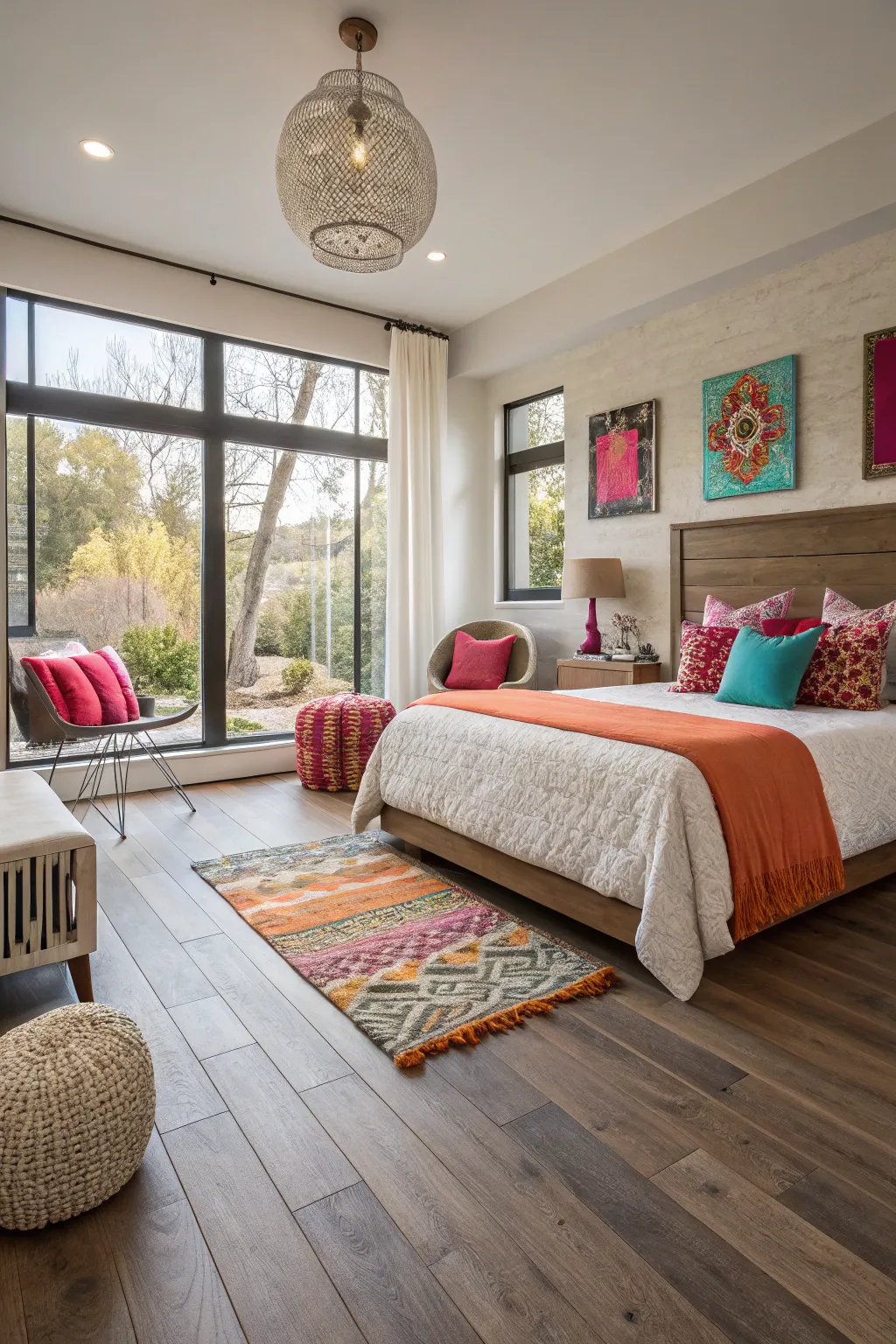 - Bohemian Floor Covering: Transform your bedroom with a Bohemian floor covering, offering vibrant patterns and rich textures.