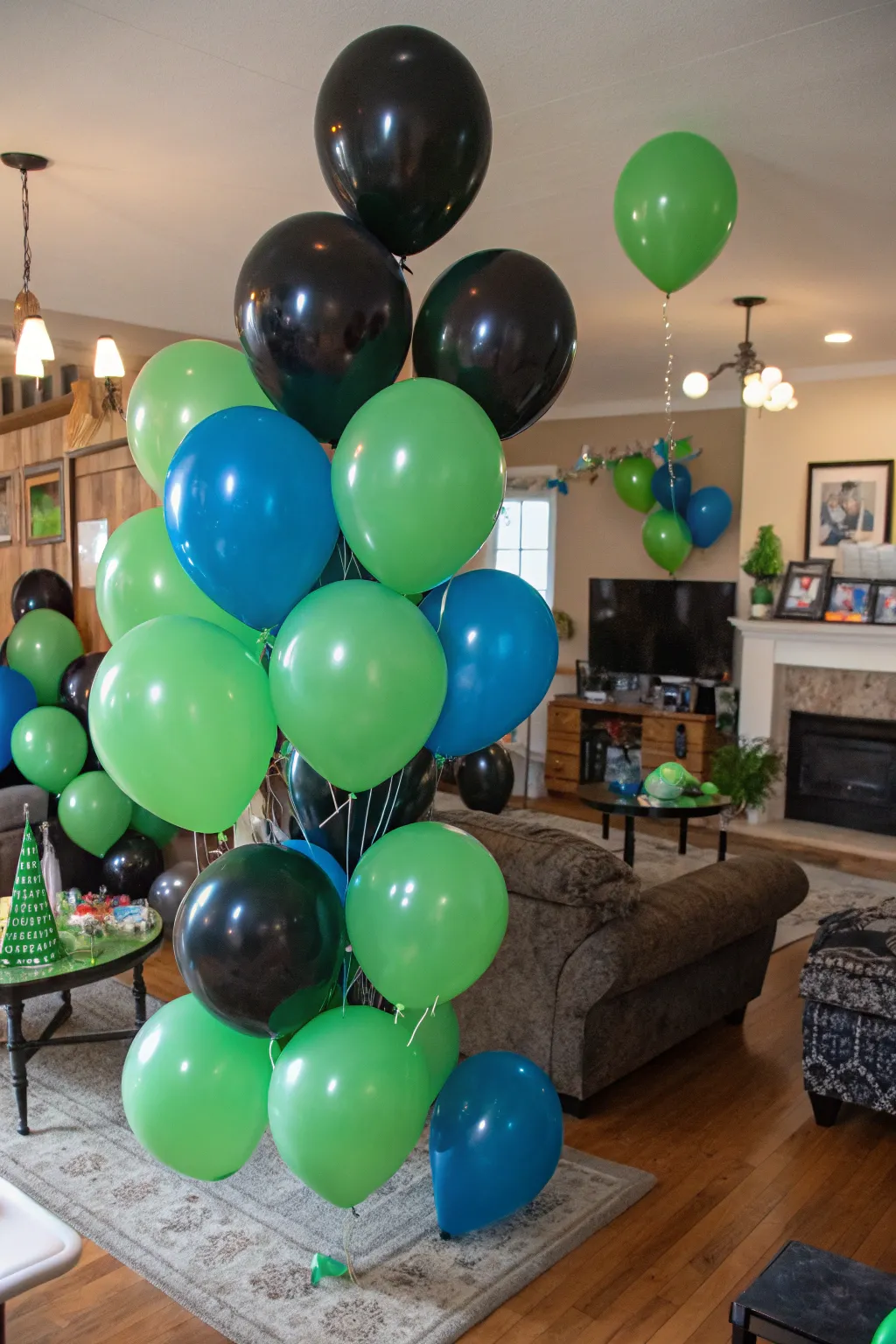 Balloons provide a straightforward yet powerful means to elevate your decorations. Decide on large, vibrant balloons in hues of green, black, and blue, arranging them in groupings or arches.