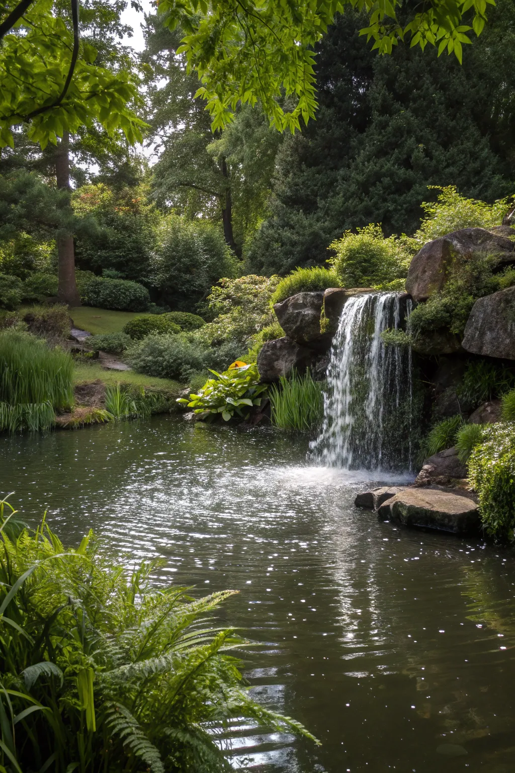 A waterfall or gentle cascade can animate your pond with the calming melody of moving water. In my own garden, it’s my favorite spot for morning tea, as the soft trickle of water sets a wonderful tone for the day.