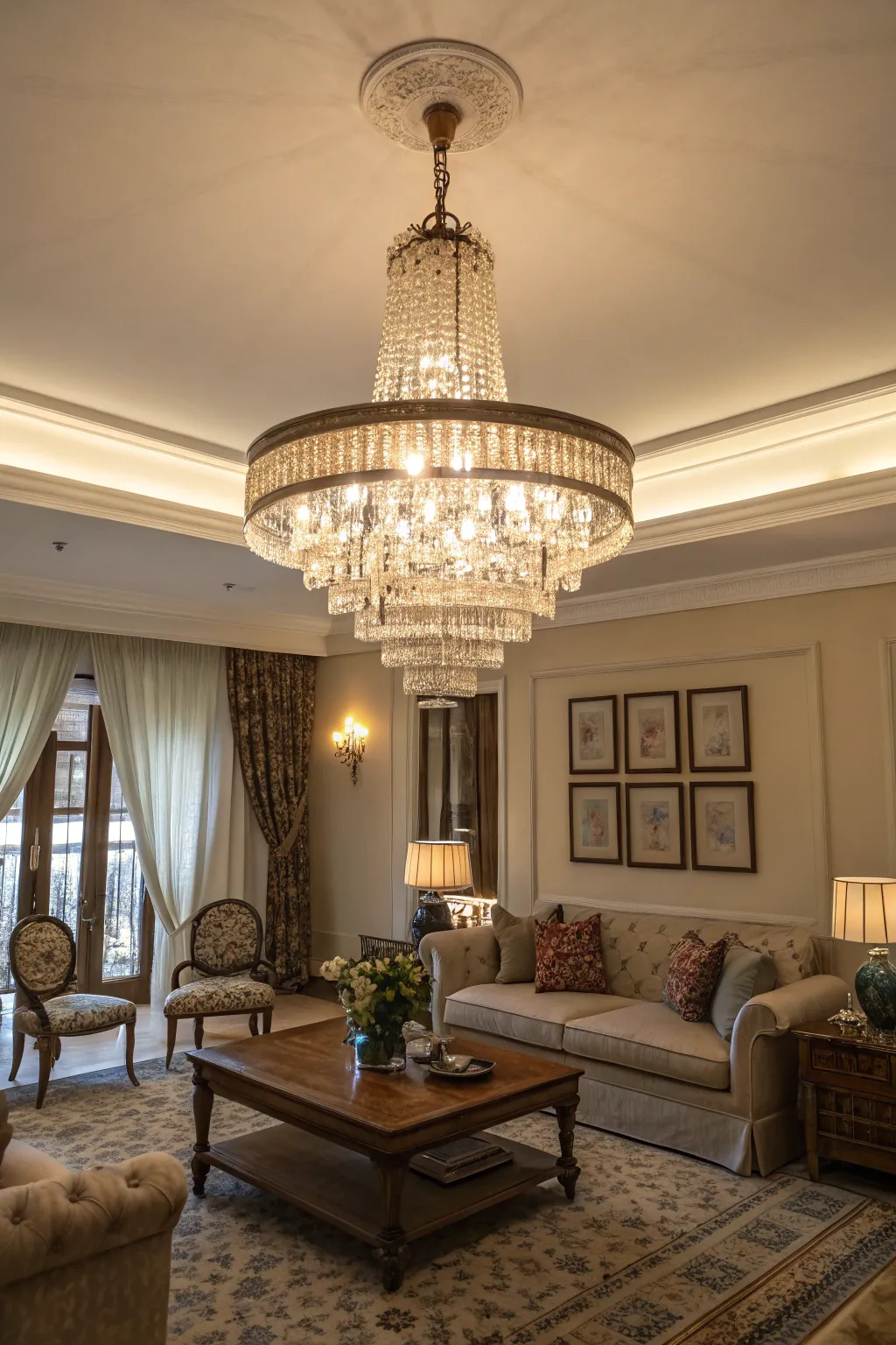 A chandelier can be the star of your living room, providing both light and style. I often pick statement chandeliers to guide the eye upwards, like a focal point that commands attention.
