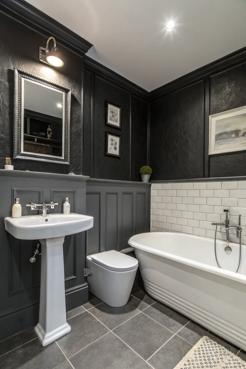 Incorporate dark and bright art to add personality and style. Art can serve as a focal point and enhance the bathroom’s atmosphere.