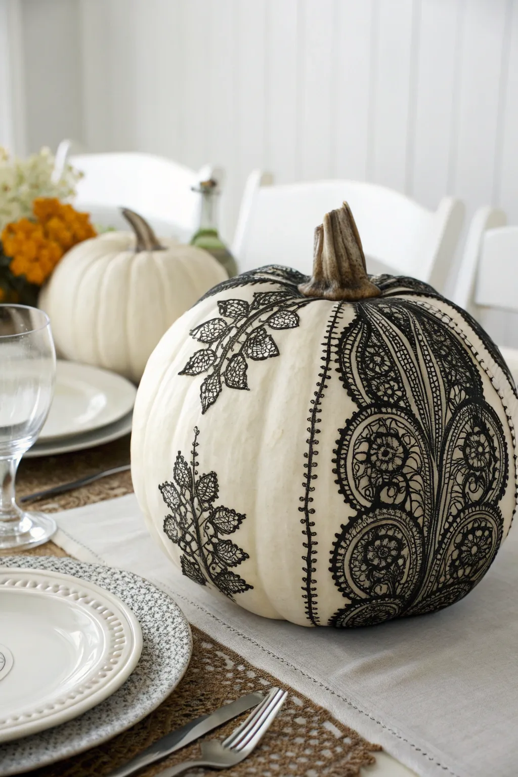 For a touch of sophistication, paint net designs on your pumpkin. Use a template for detailed designs and choose contrasting colors like black on white for a striking look.
